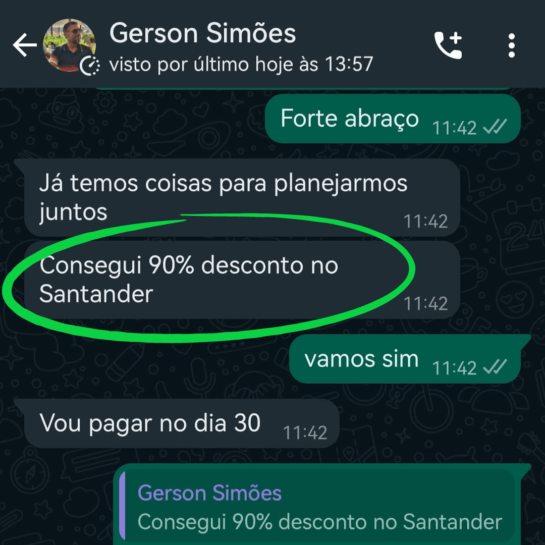 O último fator que realmente fez muita diferença para tomar essa decisão de compartilhar o meu método de negociação, foi que diversos advogados começaram a me procurar pedindo orientações. Eu simplesmente comecei a receber mensagens diárias de advogados querendo “dicas” de como negociar direto com os bancos. Todos me relatavam basicamente a  mesma coisa: “Já tenho um processo aberto que não anda, mas quero saber como negociar direto com o banco para resolver mais rápido”.