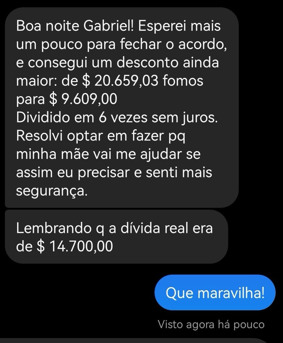 Para o seu cliente é super vantajoso porque ele economizou pagando um valor mais justo na dívida e para você é mais vantajoso porque vai receber uma parte dessa economia.